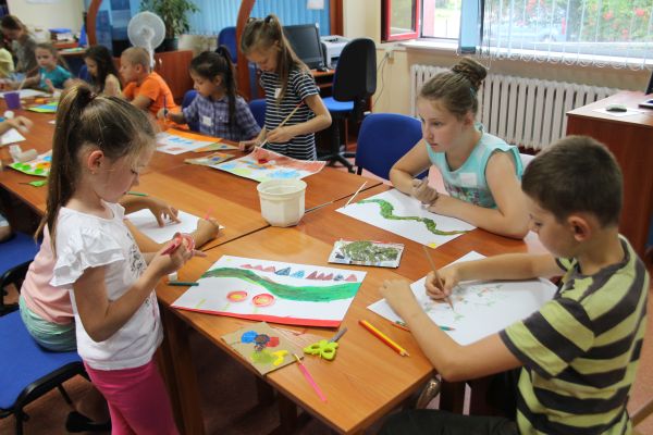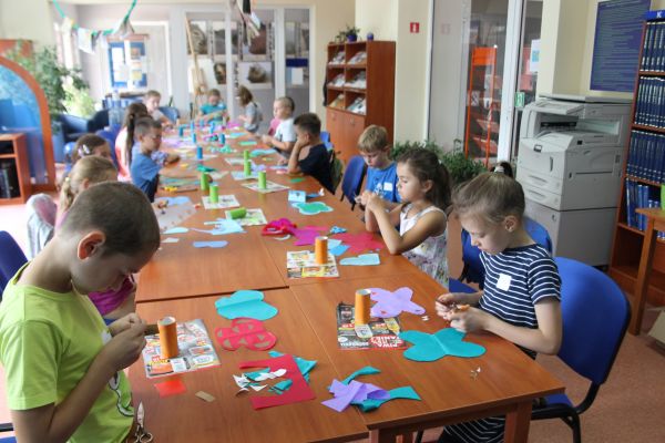 2016.07 cykl zajęć letnich, artystycznych dla dzieci „Wakacje ze sztuką” w Bibliotece Głównej w Swarzędzu.