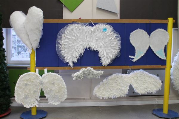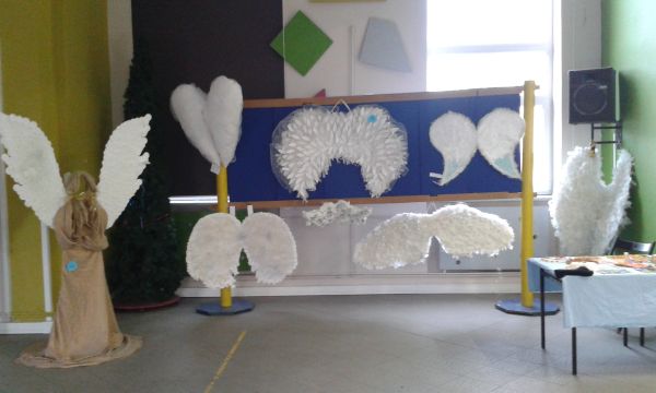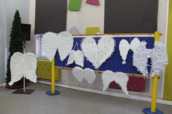 2017.12 happening MY-ANIOŁY w Szkole Podstawowej nr 4 w Swarzędzu, tworzenie i instalacja/prezentacja/wystawa w przestrzeni szkoły anielskich skrzydeł.